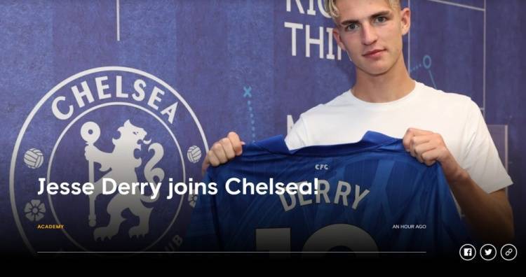 官方:切尔西签下水晶宫18岁边锋杰西-德里,合同至2029年